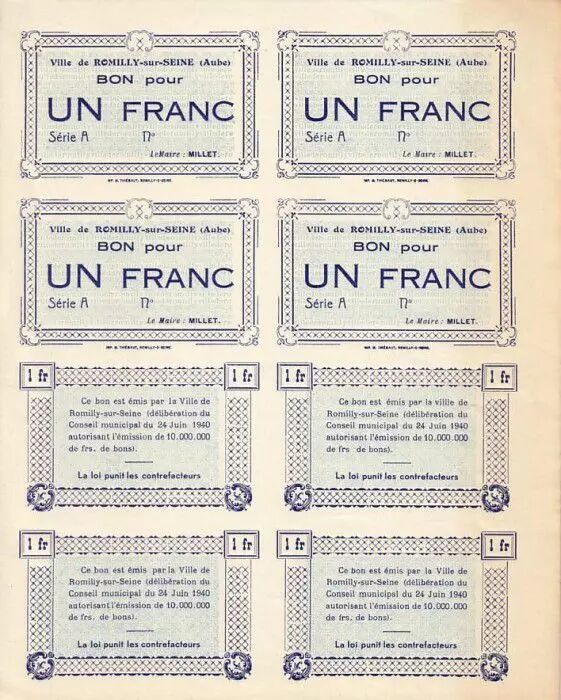 Romilly-sur-Seine - Planche uniface incluant 4 épreuves recto et 4 verso, Série A, Non émisDate émission : 1940
