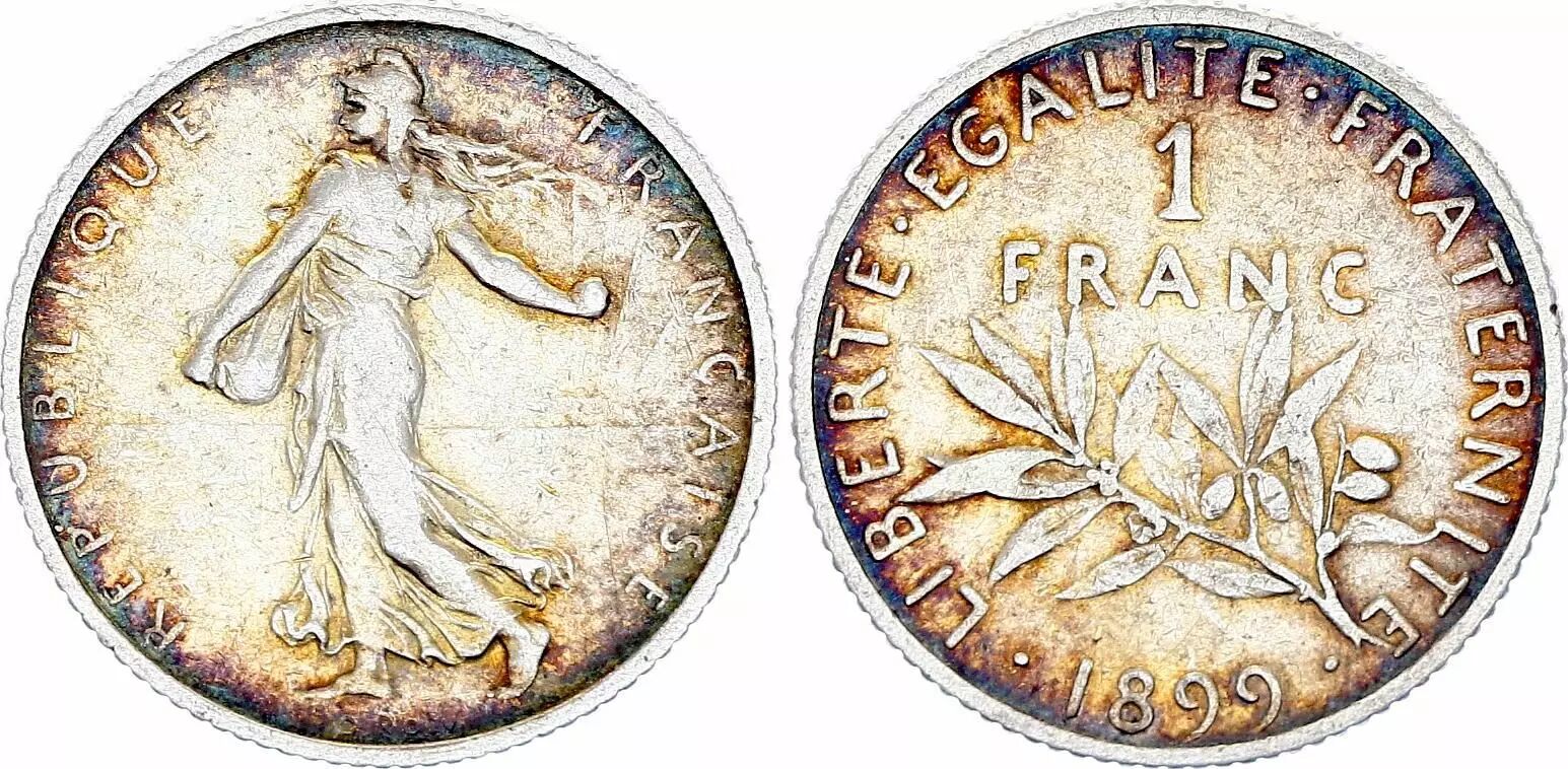 Coin France 1 Franc Semeuse - 1899 - Silver