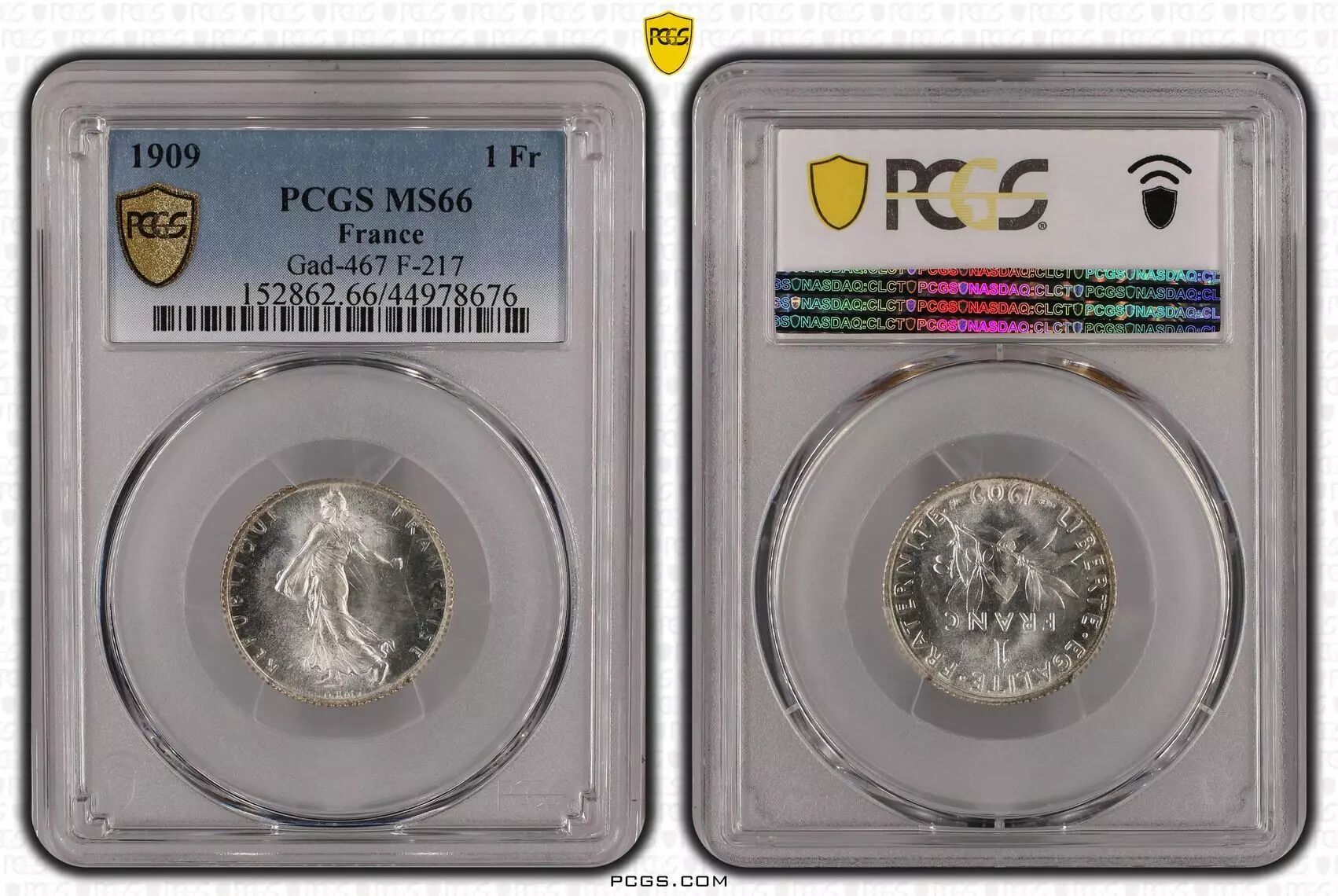 Coin France 1 Franc Semeuse - 1909 - PCGS MS66