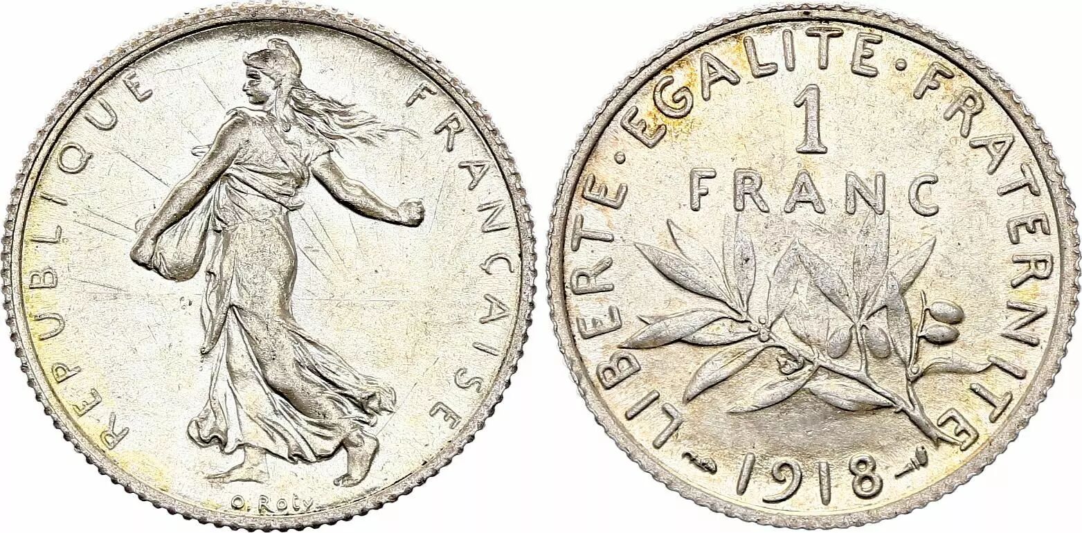 Pièce France 1 Franc - Semeuse - 1918 - Argent