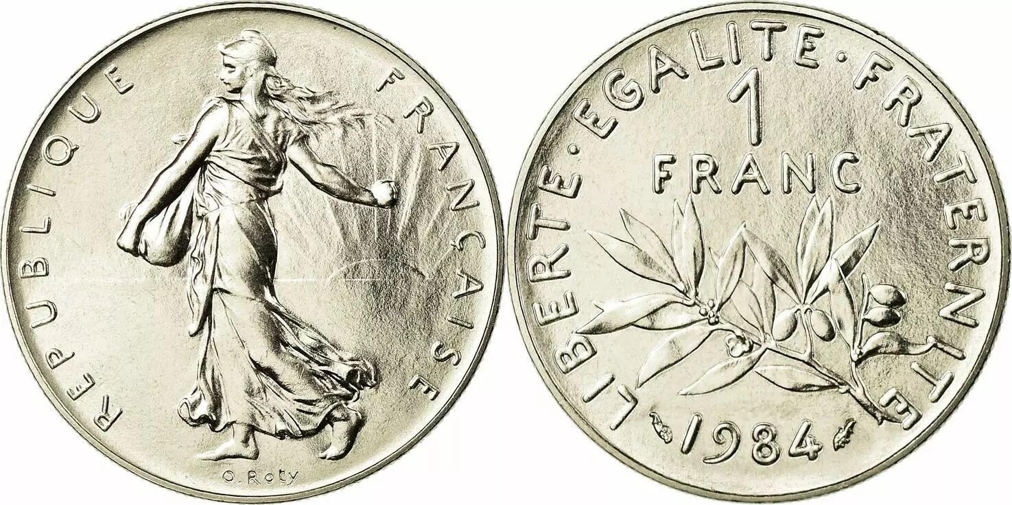 Cette pièce de 1 franc, frappée en 1984, est issue d'un coffret Fleur de Coin (FDC). Elle est composée de nickel, pèse 6 grammes et présente un diamètre de 24 millimètres.