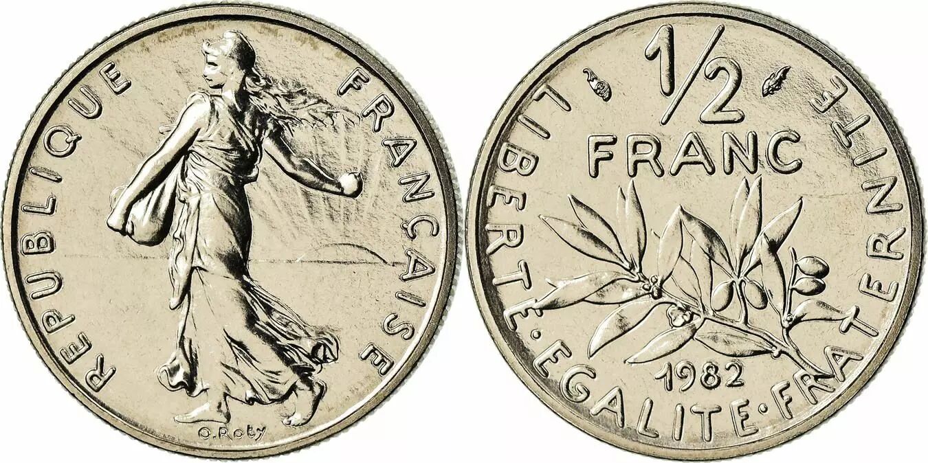 The 1 Franc Semeuse coin, dated 1982, is a French production in nickel. It weighs 6 grams and has a diameter of 24 millimeters. This coin was specially taken from a Fleur de Coin (FDC) set, guaranteeing optimal conservation.