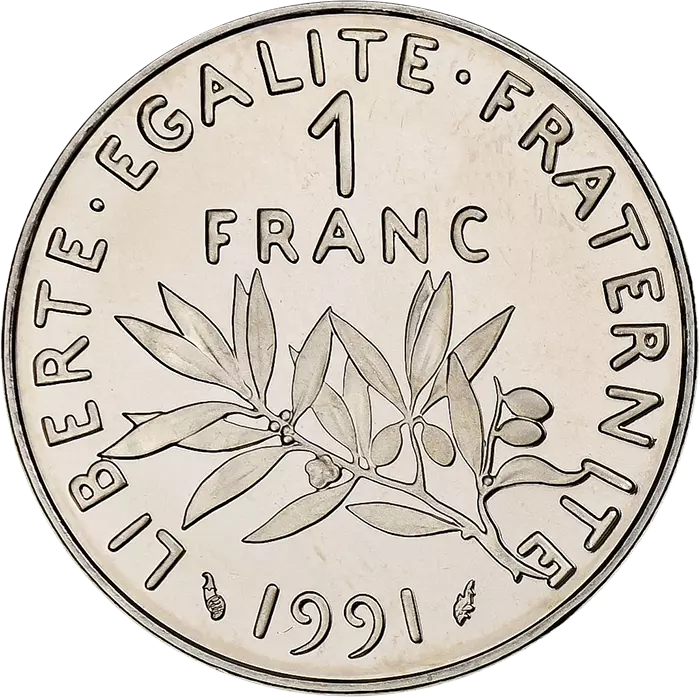 1 Franc Semeuse - 1991 - ProofNickel - 6 g - 24 mmmintage : 6232 copies