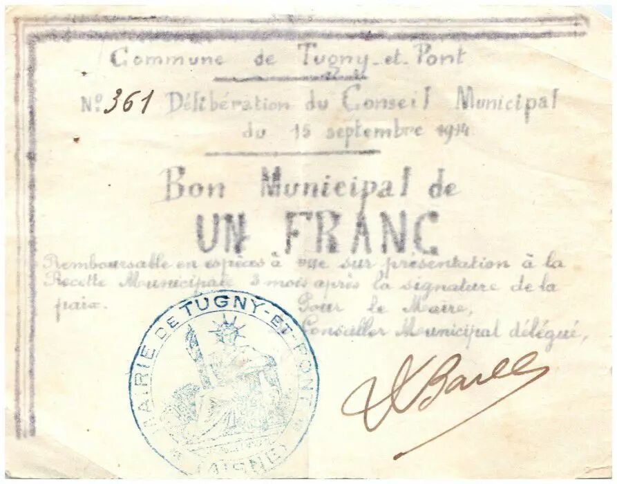 Home > > France 1 Franc Tugny-Et-Pont City - 1914