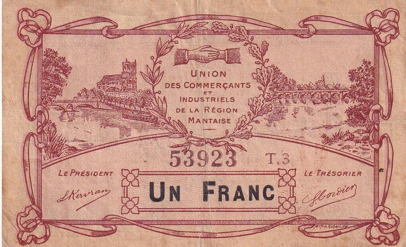 Home > > France 1 Franc - Union des commerçants et industriels de la région mantaise - 1920 - Serial T.3 - P.78-35