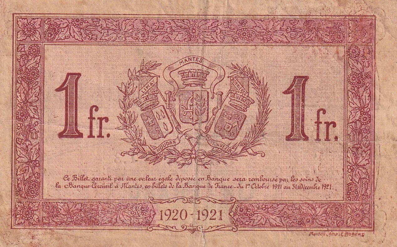Billet France 1 Franc - Union des commerçants et industriels de la région mantaise - 1920 - Série T.3 - P.78-35