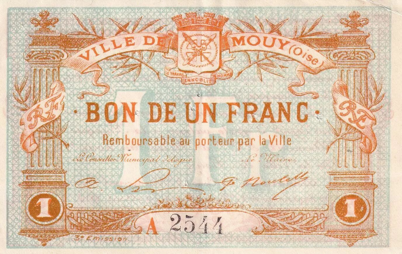 Billet France 1 Franc - Ville de Mouy - 1916 - Série A - P.60-53