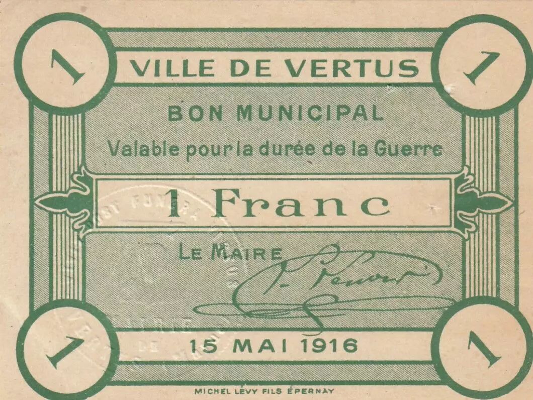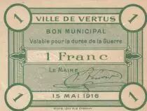 Billet France 1 Franc - Ville de Vertus - 15-05-1916