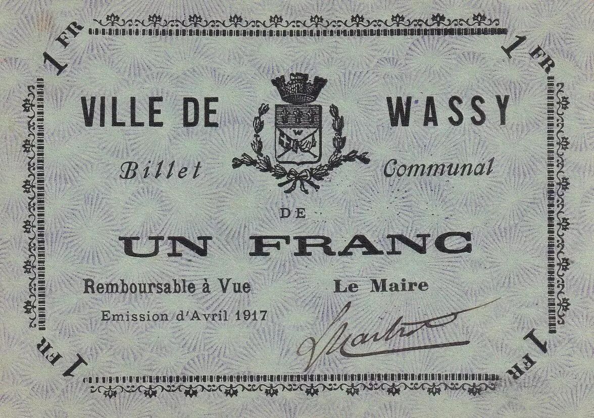 Home > > France 1 Franc - Ville de Wassy - 1917 - P.52-51