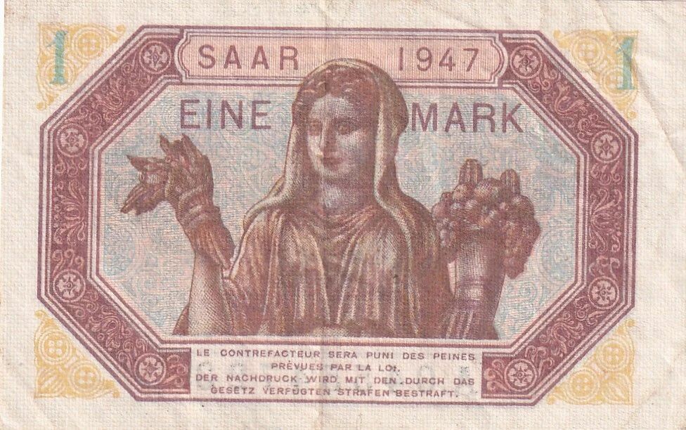 This French banknote, with a nominal value of 1 mark, was issued in 1947. It belongs to Series A.