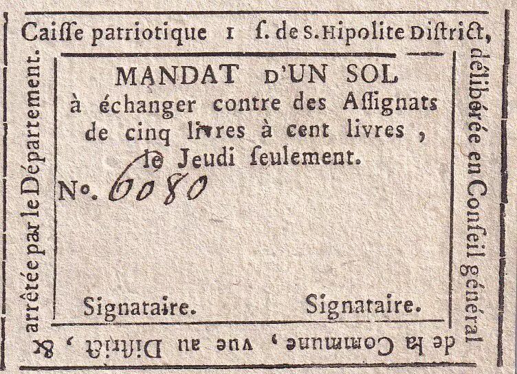 Billet France 1 Sol - Gard - Saint-Hyppolite-du-Fort - 1792 - SPL