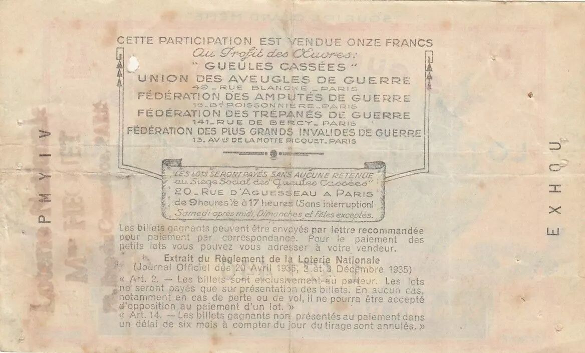 Home > > France 1/10 Loterie Nationale - 1938 - TB