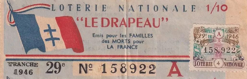 Accueil > Archivage > France 1/10 Loterie Nationale - "Le drapeau" - 1946 - TTB