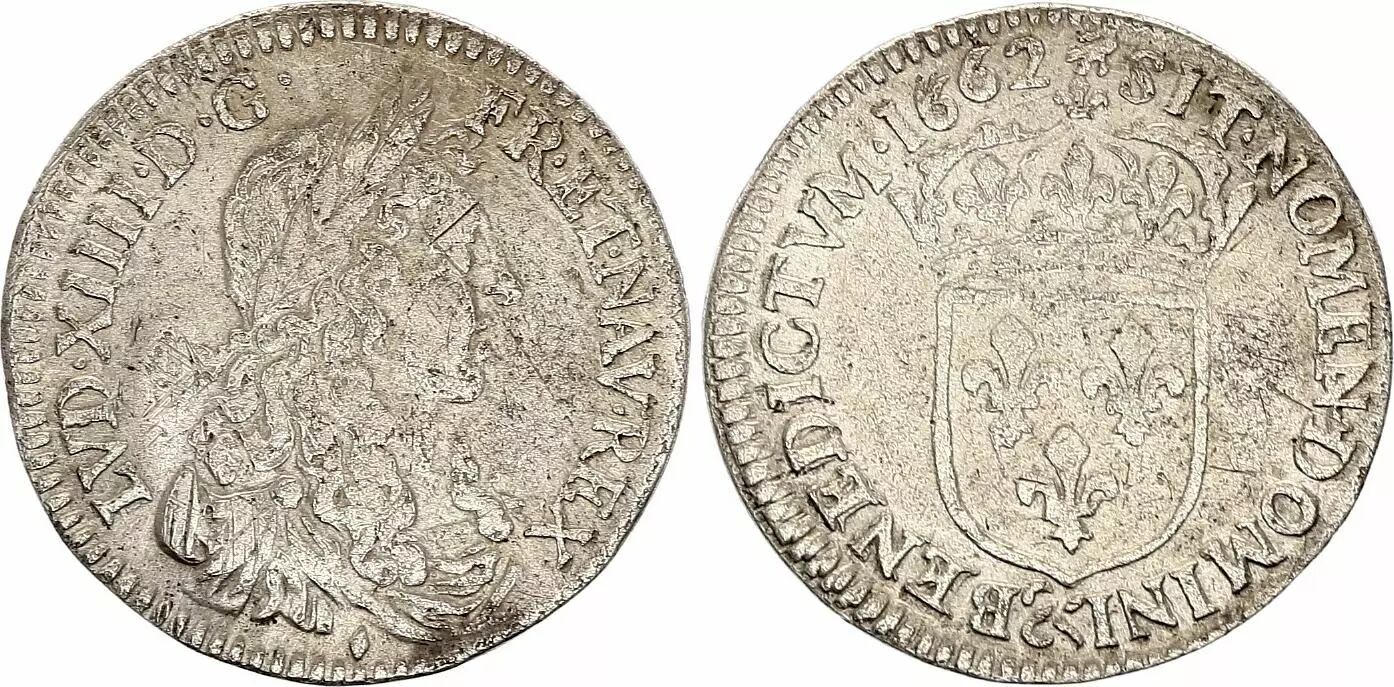 Coin France 1/12 Ecu Louis XIV Juvenile bust - 1662 & Aix en Provence - Silver