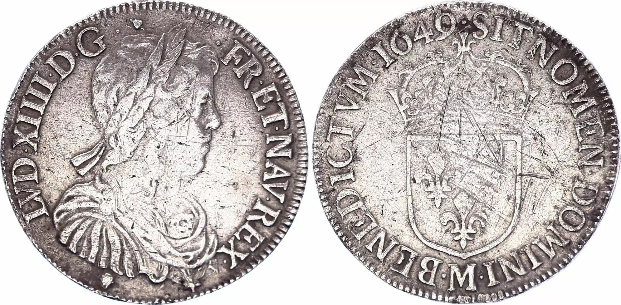 Pièce France 1/2 Ecu Louis XIV à la mèche longue - 1649 M Toulouse