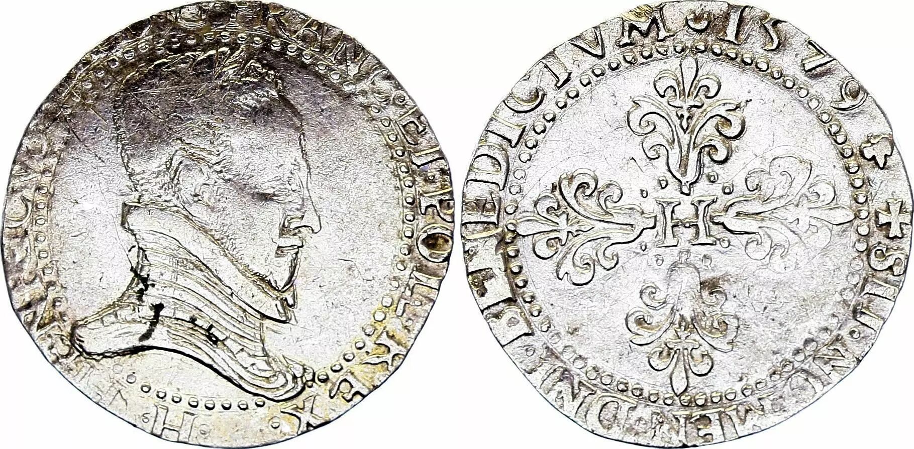 Accueil > Archivage > France 1/2 Franc, Henri III Col Plat - 1579 H La Rochelle - Argent - TTB