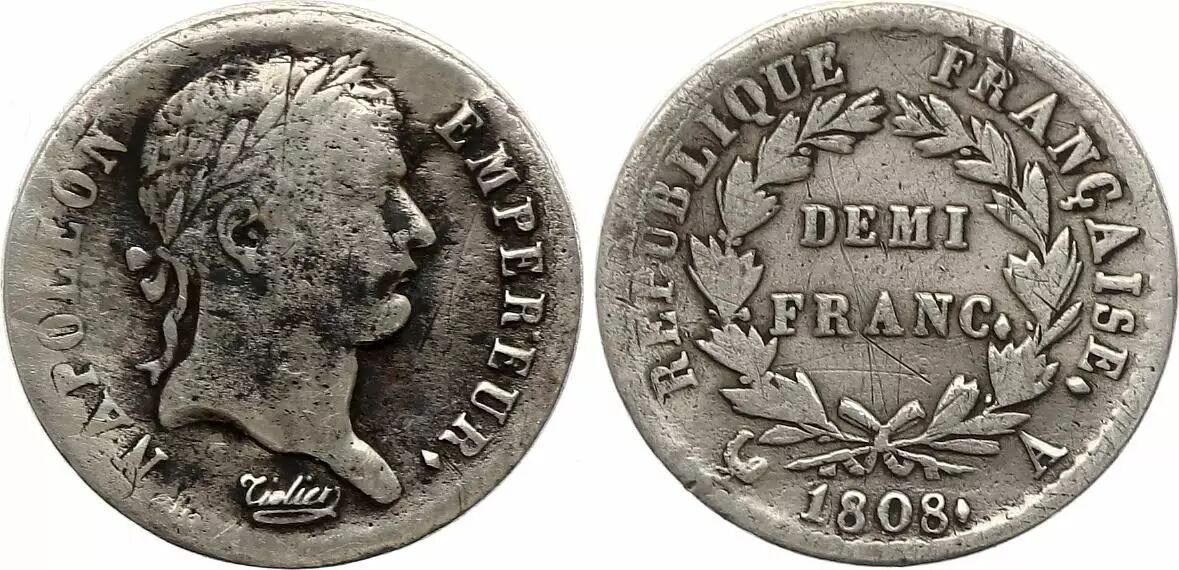 Coin France 1/2 Franc Napoléon I - 1808 A Paris - Silver