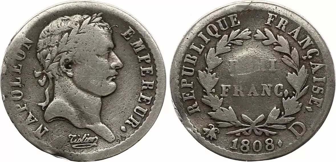 Pièce France 1/2 Franc Napoléon I - 1808 D Lyon - Argent