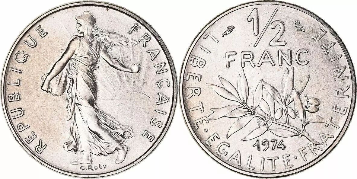 Coin France 1/2 Franc Seed Sower - 1974 - from UNC SET