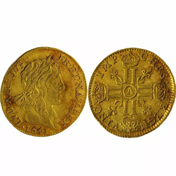 Pièce France 1/2 Louis d'Or 1641 A Paris - Louis XIII - Mèche longue - Trésor de Plozévet