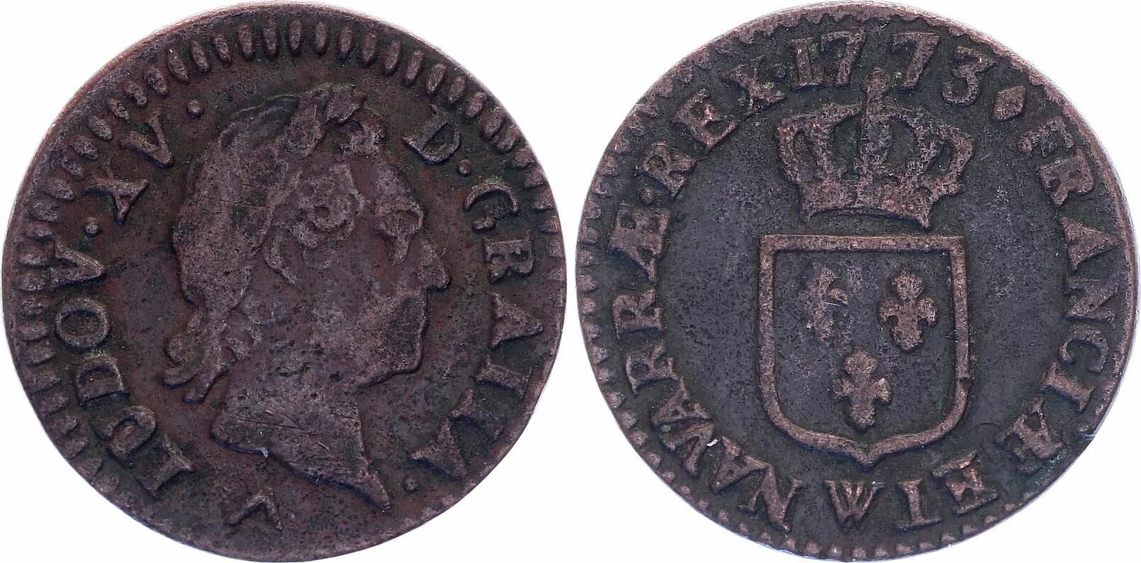 Accueil > Monnaies françaises (470 à 2002) > Monnaies Royales (987 à 1870) > Louis XV (1710-1774) > France 1/2 Sol - Louis XV à la vieille tête - 1773 - W Lille