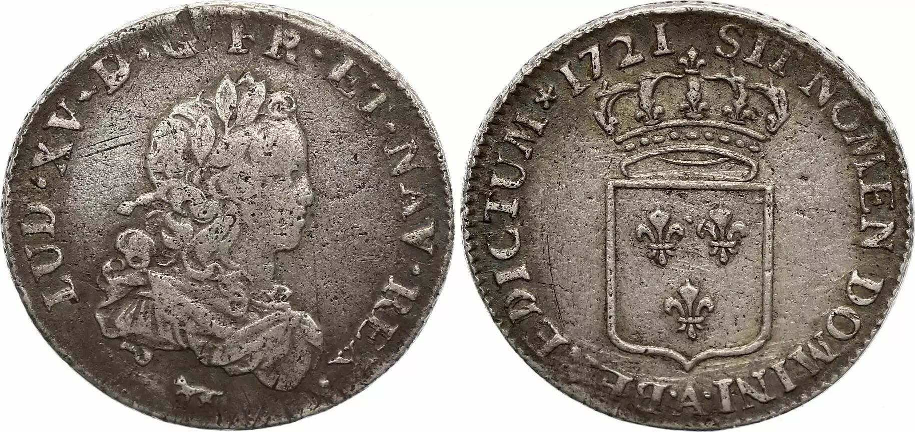 Pièce France 1/3 Ecu de France Louis XV - 1721 A Paris Argent