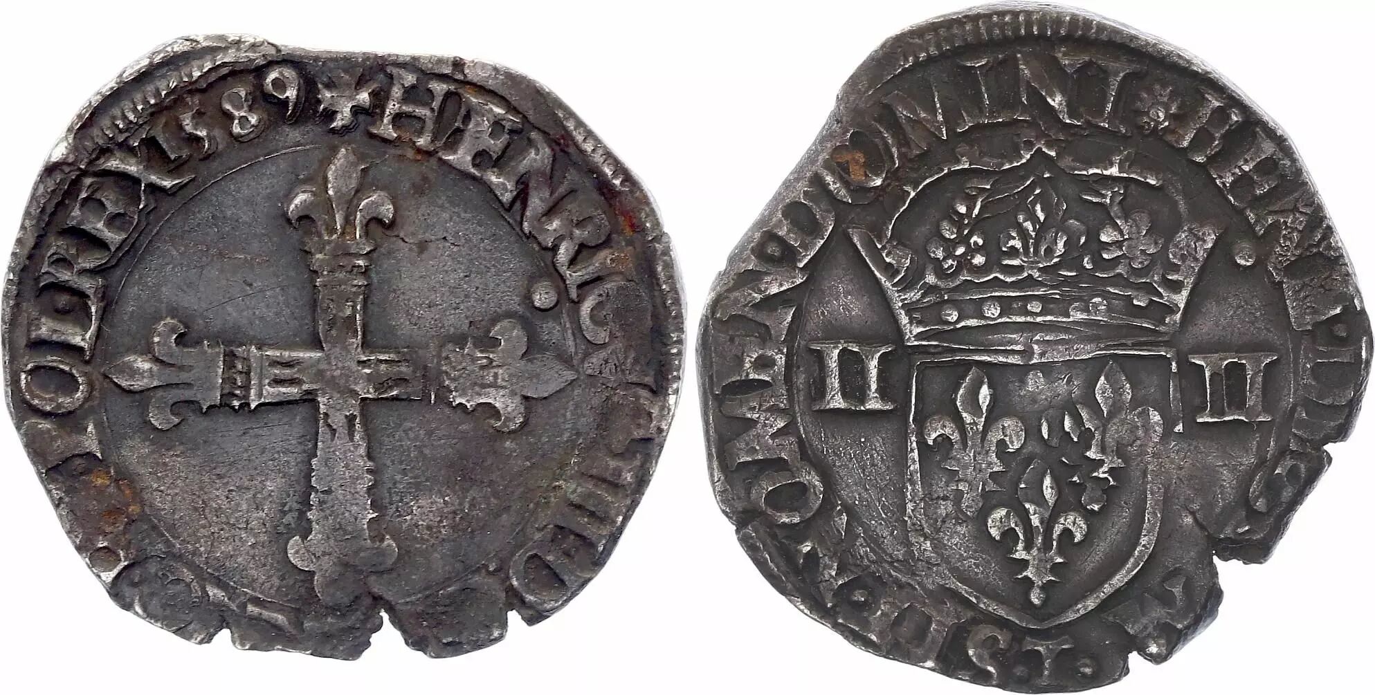 Coin France 1/4 Ecu, Henri III - 1589 Nantes - F to VF - Silver