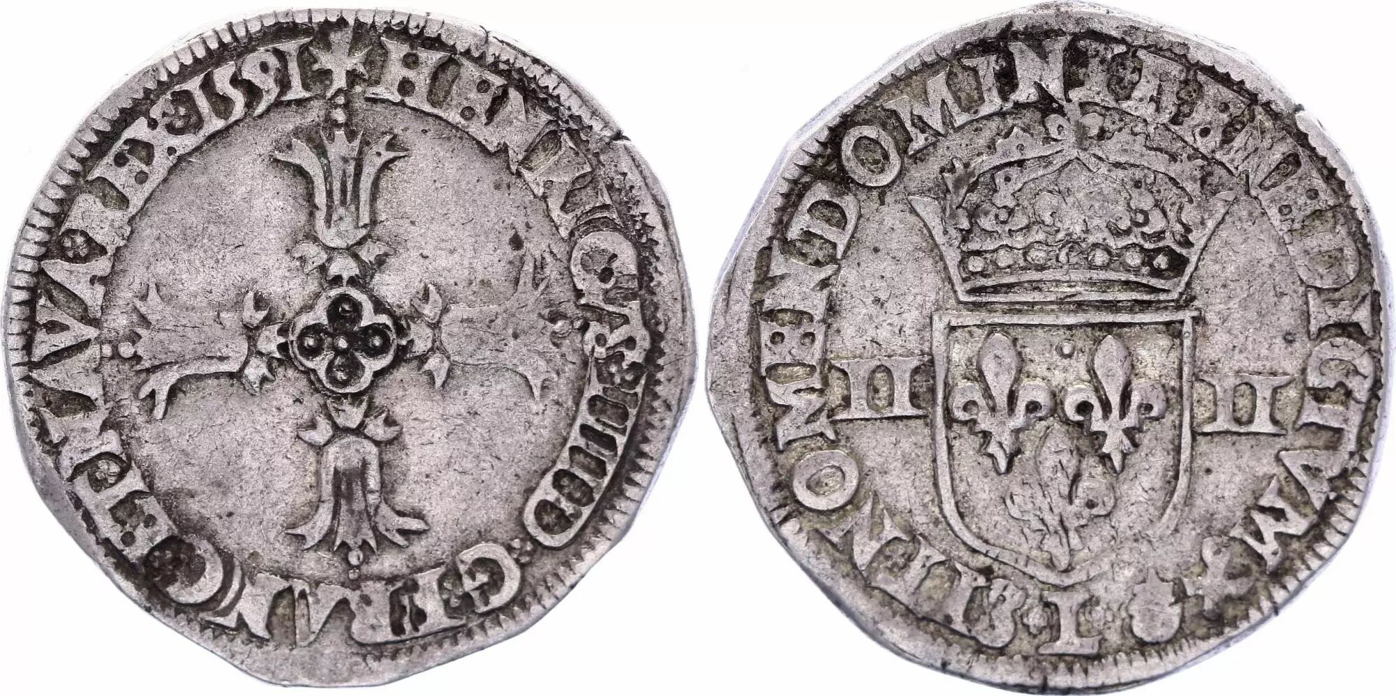 Coin France 1/4 Ecu Henri IV - Silver - 1591 L Bayonne