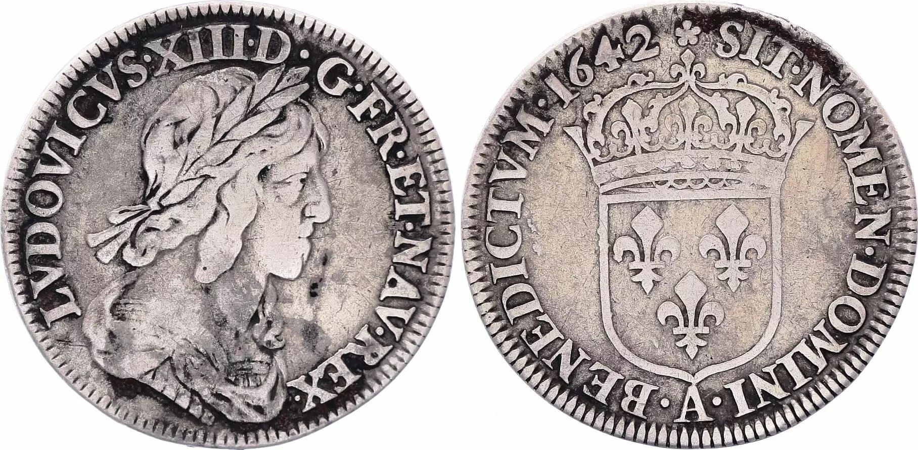 Pièce France 1/4 Ecu Louis XIII 2 em poinçon de Warin - 1642 .A.