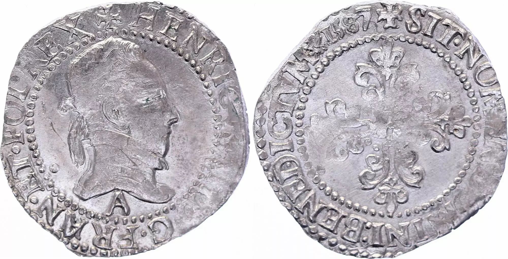 Coin France 1/4 Franc Henri III Col Plat - Silver - 1587 A