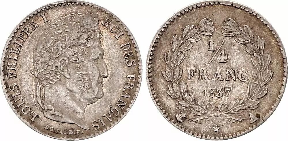Home > > France 1/4 Franc Louis Philippe I - 1837 A Paris - Silver