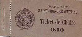 Banknote France 10 cent. Paris Ticket de chaise paroisse.