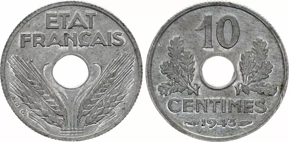 Pièce France 10 Centimes 1943 - Type Etat Français Petit Module