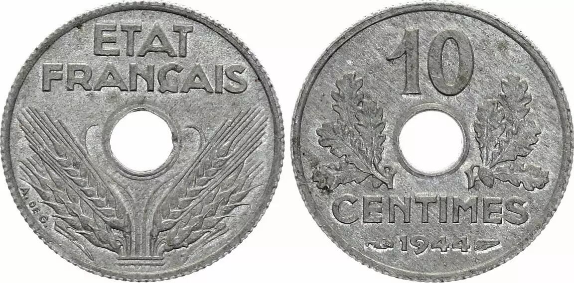 Pièce France 10 Centimes 1944 - Type Etat Français Petit Module