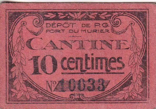 Billet France 10 centimes - Cantine - Dépôt de prisonniers de guerre Fort du Murier
