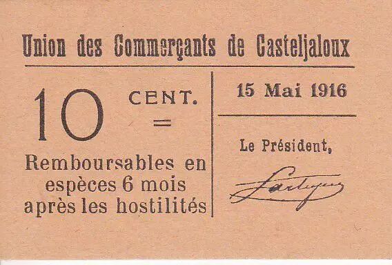 Banknote France 10 centimes Casteljaloux City