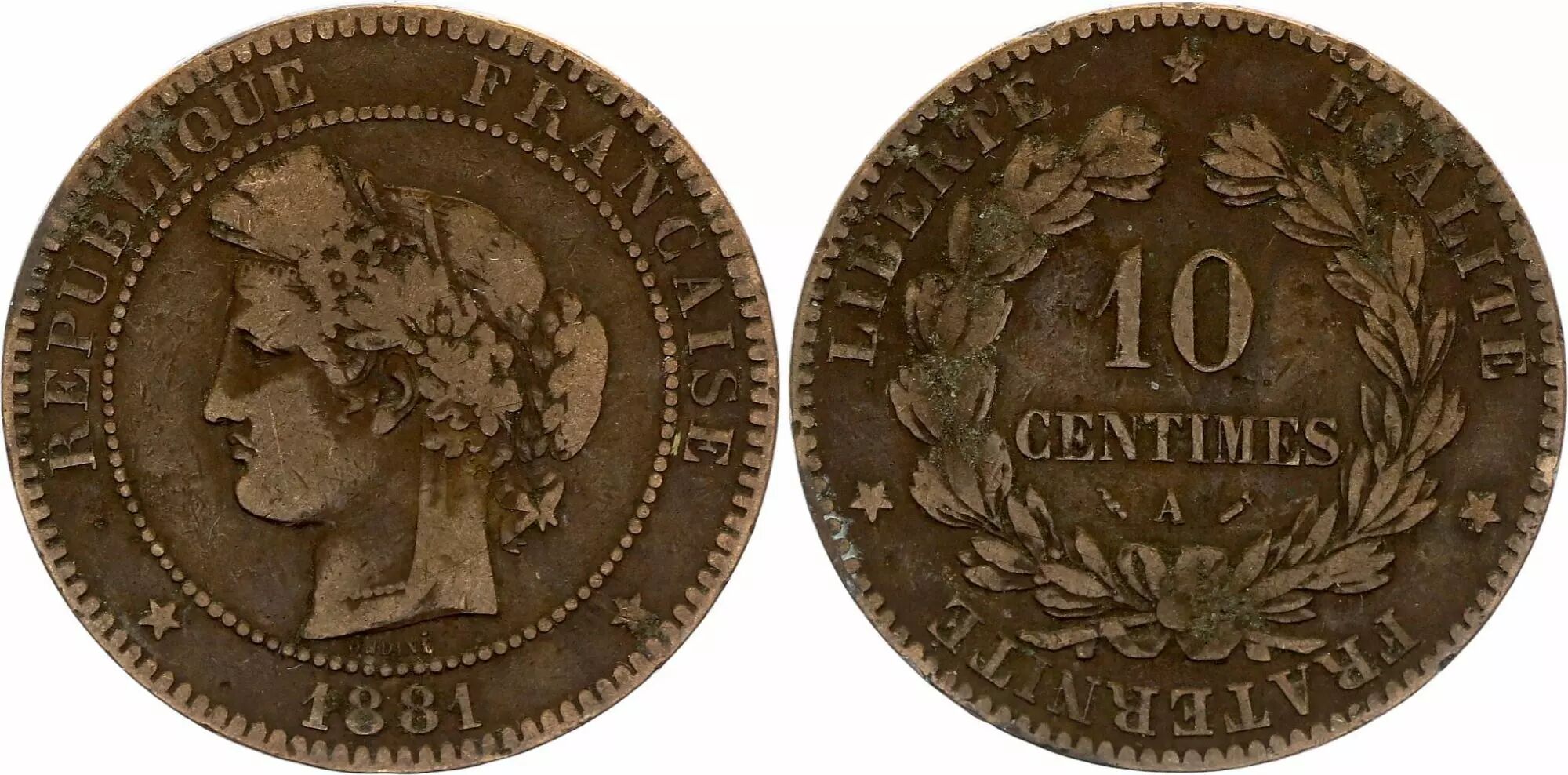 Coin France 10 Centimes Ceres - 3th Republic - 1881 A Paris
