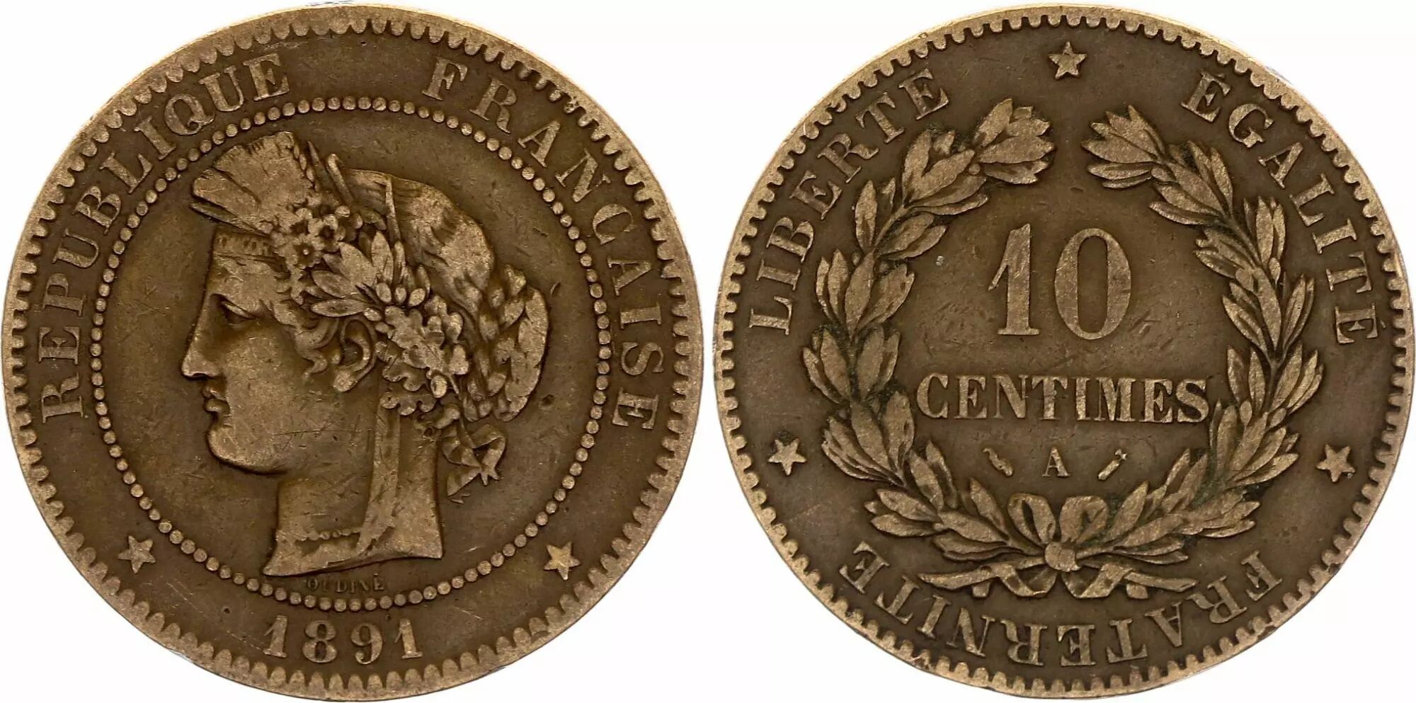 Home > > France 10 Centimes Ceres - 3th Republic - 1891 A Paris