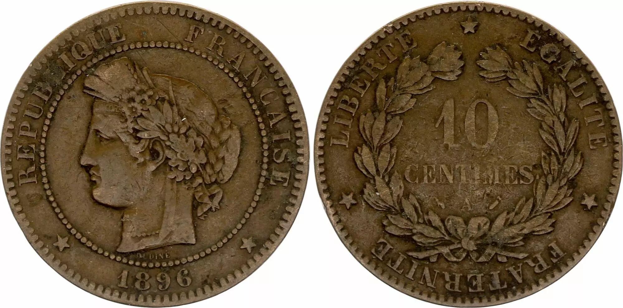Coin France 10 Centimes Ceres - 3th Republic - 1896 A Paris