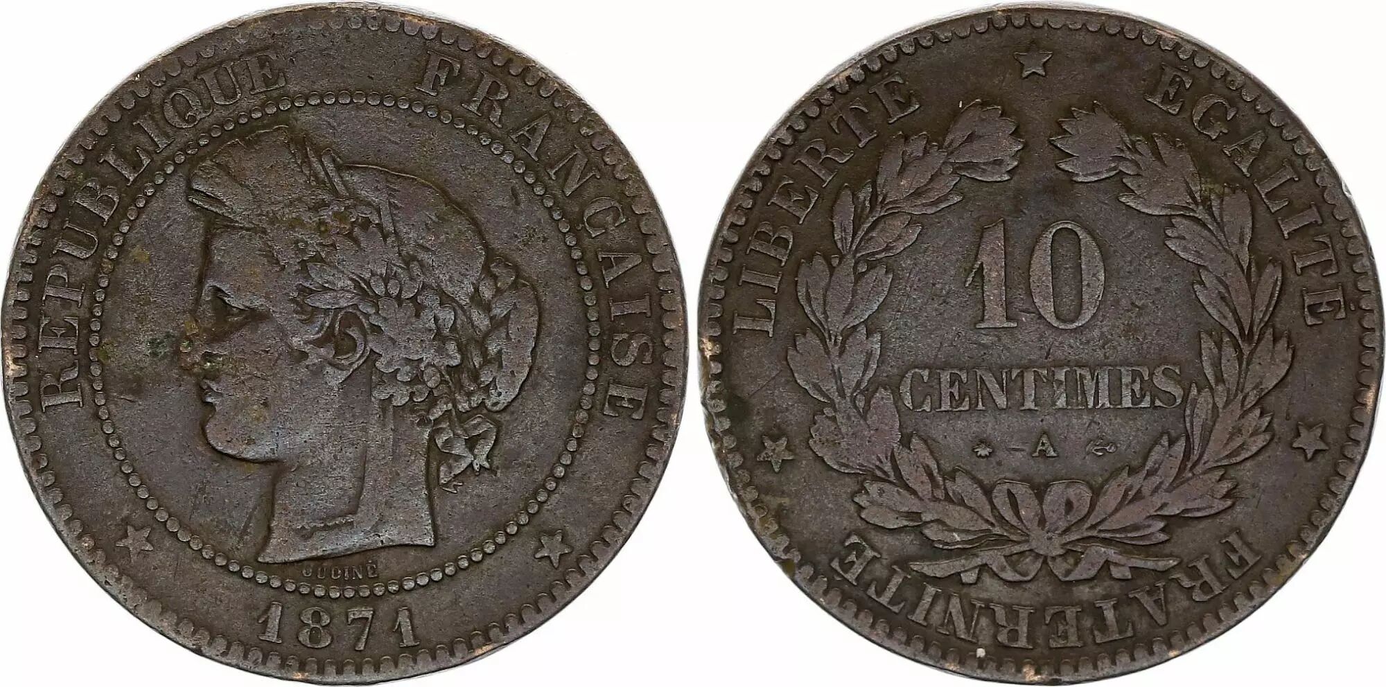 Pièce France 10 Centimes Cérès - Gouvernement Défense Nationale - 1871 A Paris