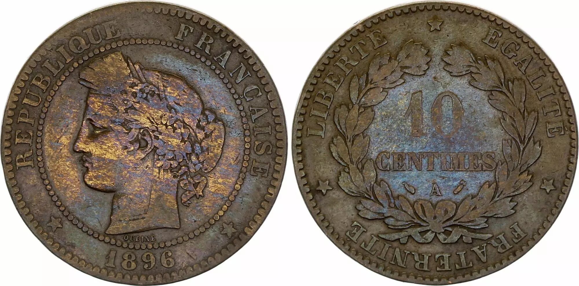 Home > French coins (470 à 2002) > Modern Currencies (1789 to 2002) > 10 centimes > France 10 Centimes Cérès - Third Républic - 1896 A Paris