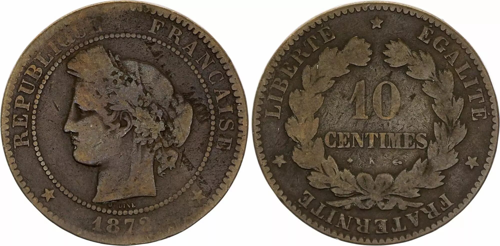 Pièce France 10 Centimes Cérès - Troisième République - 1872 K Bordeaux