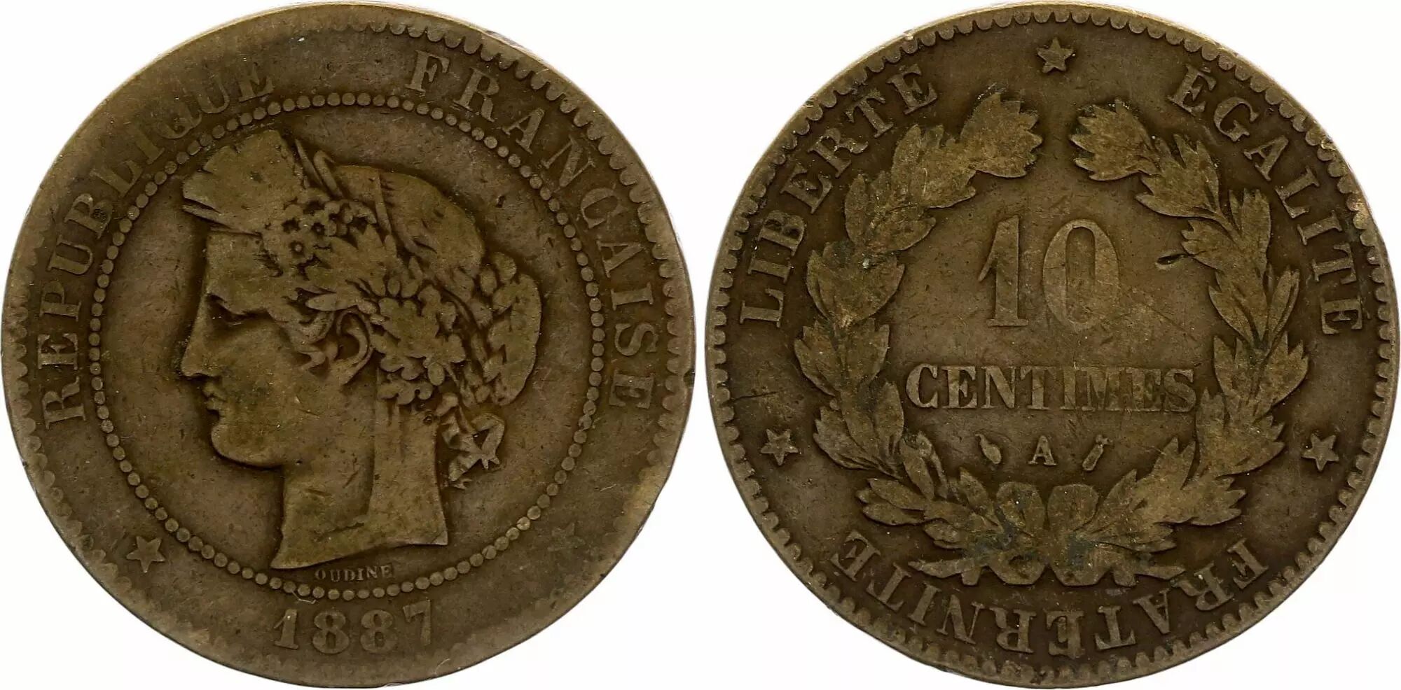 Pièce France 10 Centimes Cérès - Troisième République - 1887 A Paris