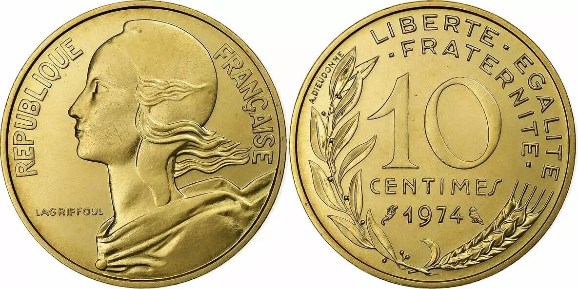 Pièce France 10 Centimes Marianne - 1974 - issu de coffret FDC