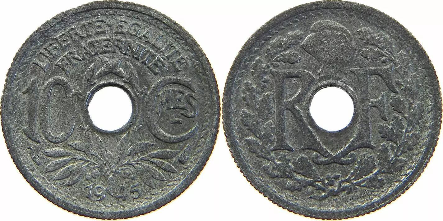 Home > > France 10 Centimes Monogram RF - 1945 - VF