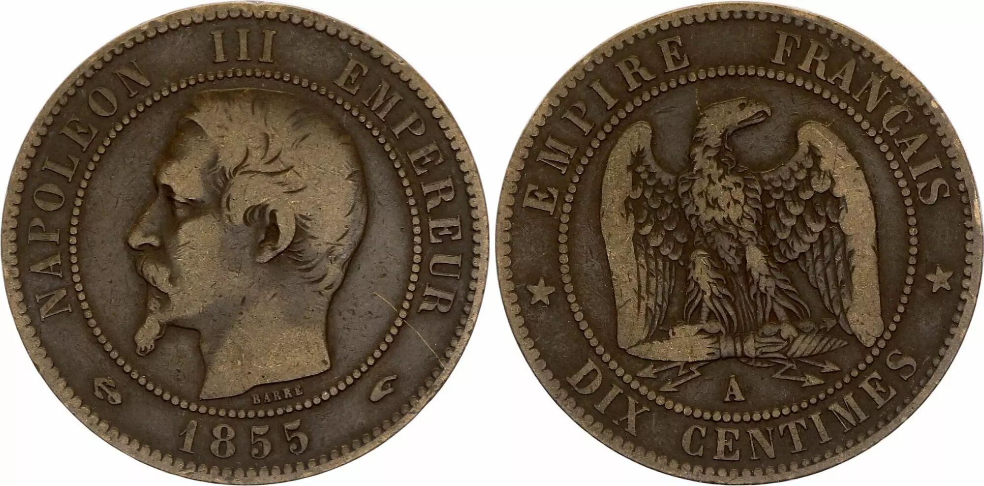 Home > > France 10 Centimes Napoleon III Nude head - 1855 A Paris
