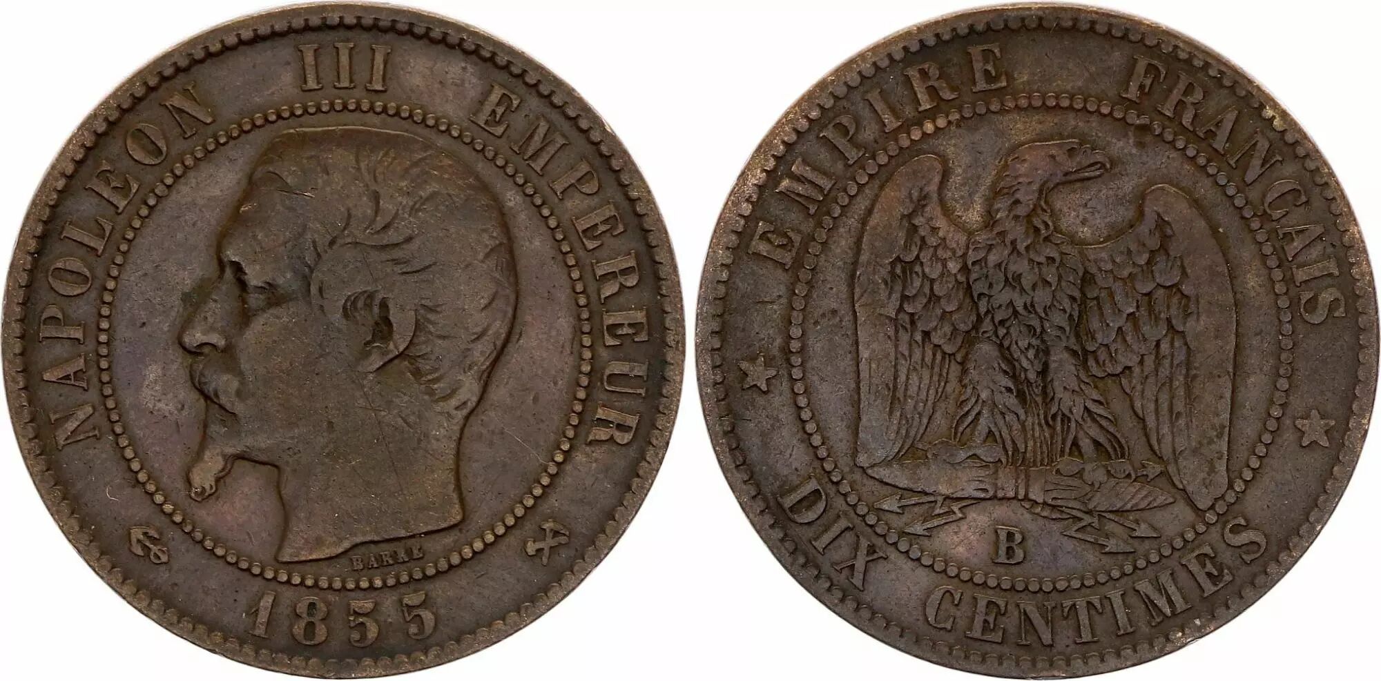 Coin France 10 Centimes Napoleon III Nude head - 1855 B Rouen