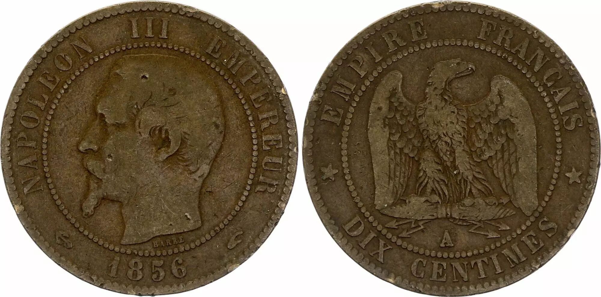 Home > > France 10 Centimes Napoleon III Nude head - 1856 A Paris