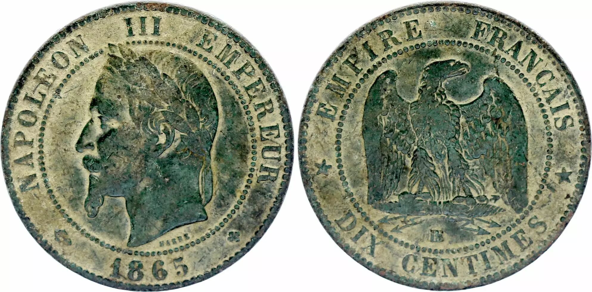 Accueil > Archivage > France 10 Centimes Napoléon III Tête laurée - 1865 BB - Strasbourg - TB
