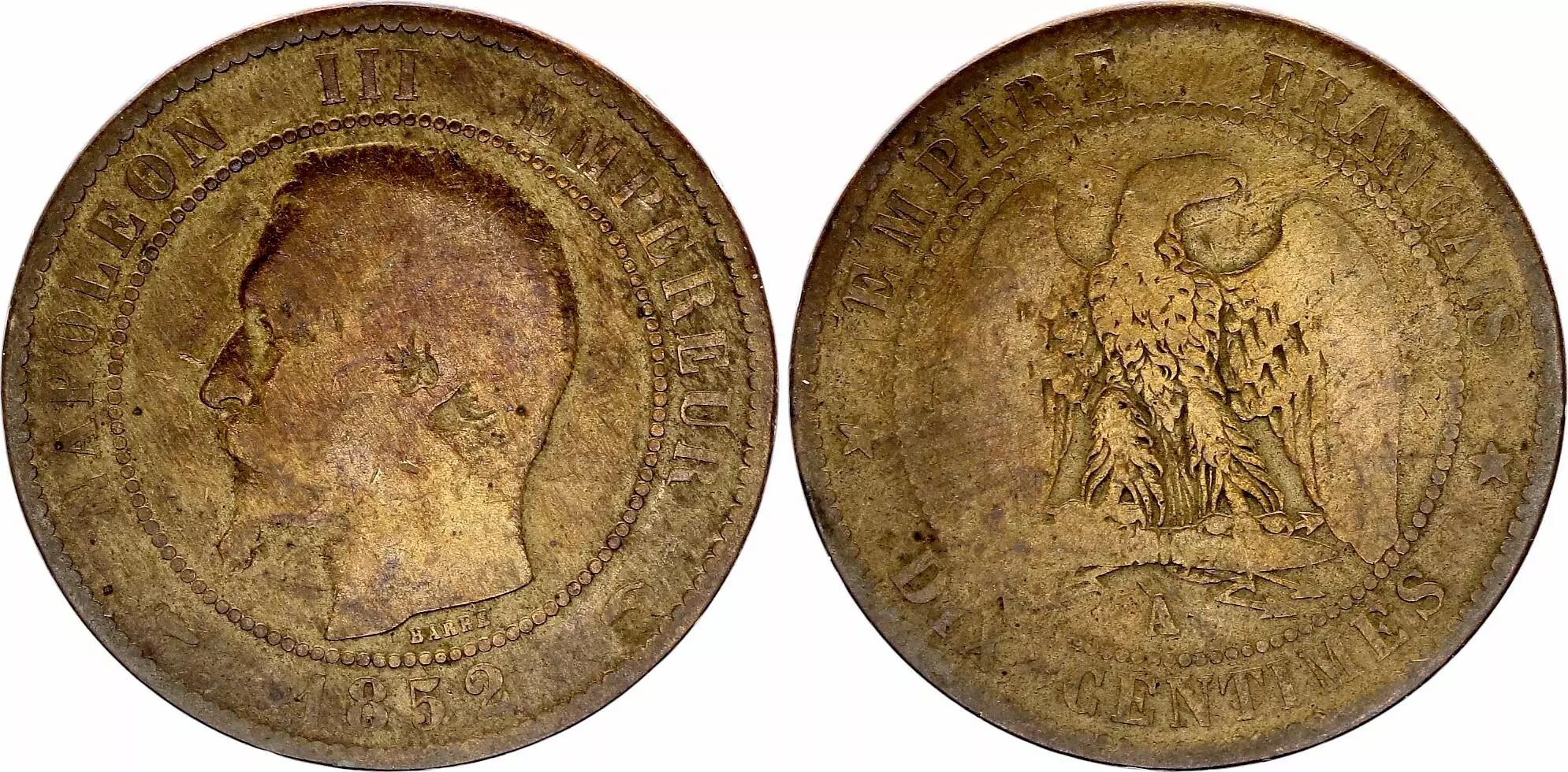 Pièce France 10 Centimes Napoléon III Tête nue - 1852 A Paris - B